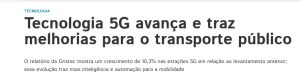 Tecnologia 5G avança e traz melhorias para o transporte público A Associação Brasileira das Empresas de Gerenciamento de Riscos e Tecnologias de Rastreamento e Monitoramento (Gristec)